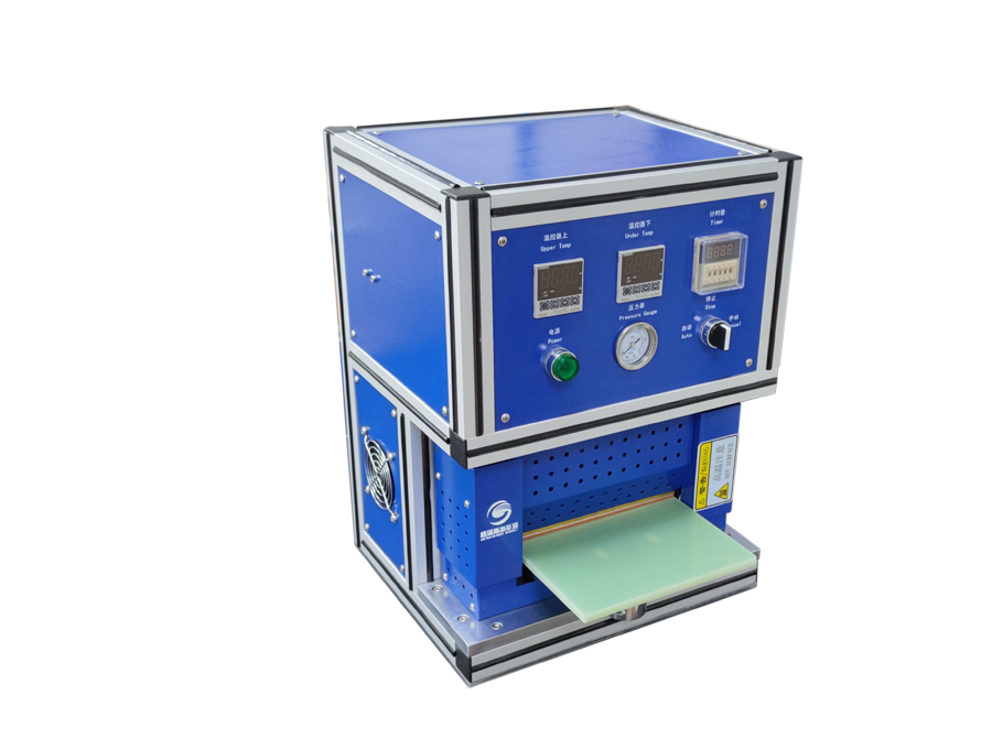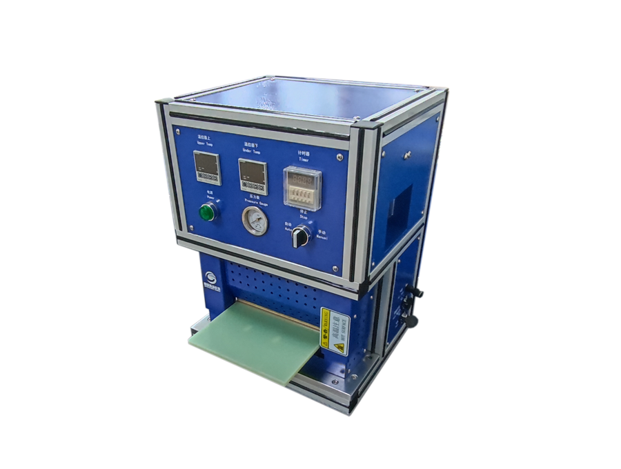 當(dāng)溫度參數(shù)達(dá)到設(shè)定值時(shí),手持電芯將電芯的封邊置于封頭之下對(duì)正封邊位,腳踏開關(guān)起動(dòng),氣缸帶動(dòng)上熱封頭下壓封裝,將鋁塑膜加熱變軟接近熔融狀態(tài)壓合融接完成熱封壓邊動(dòng)作,手工將電芯取出完成。
