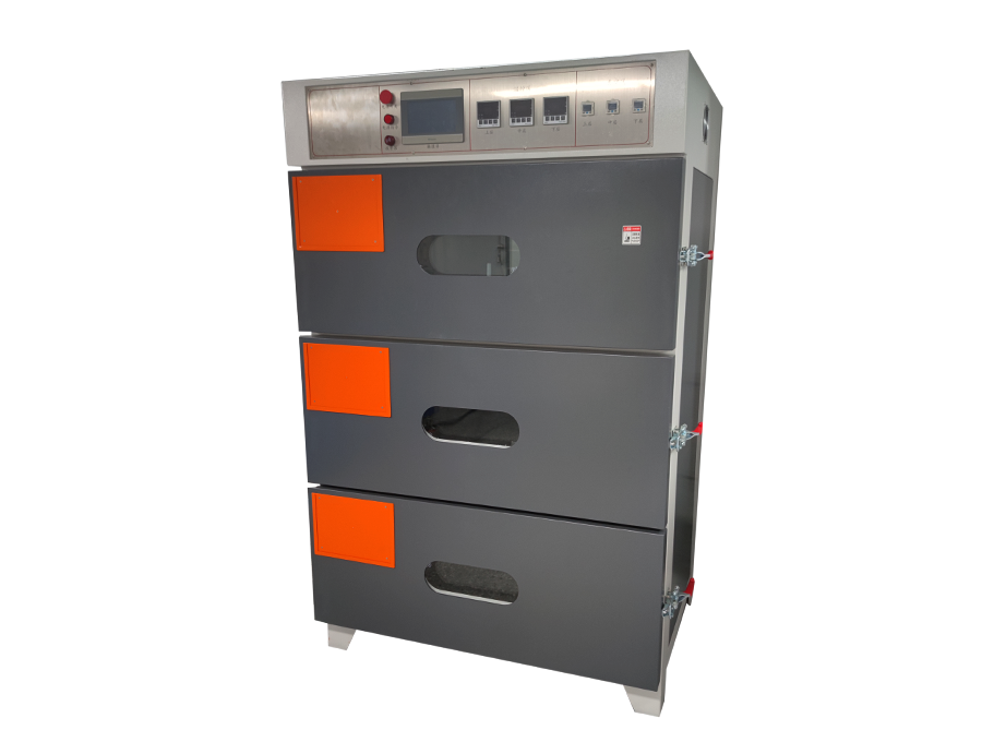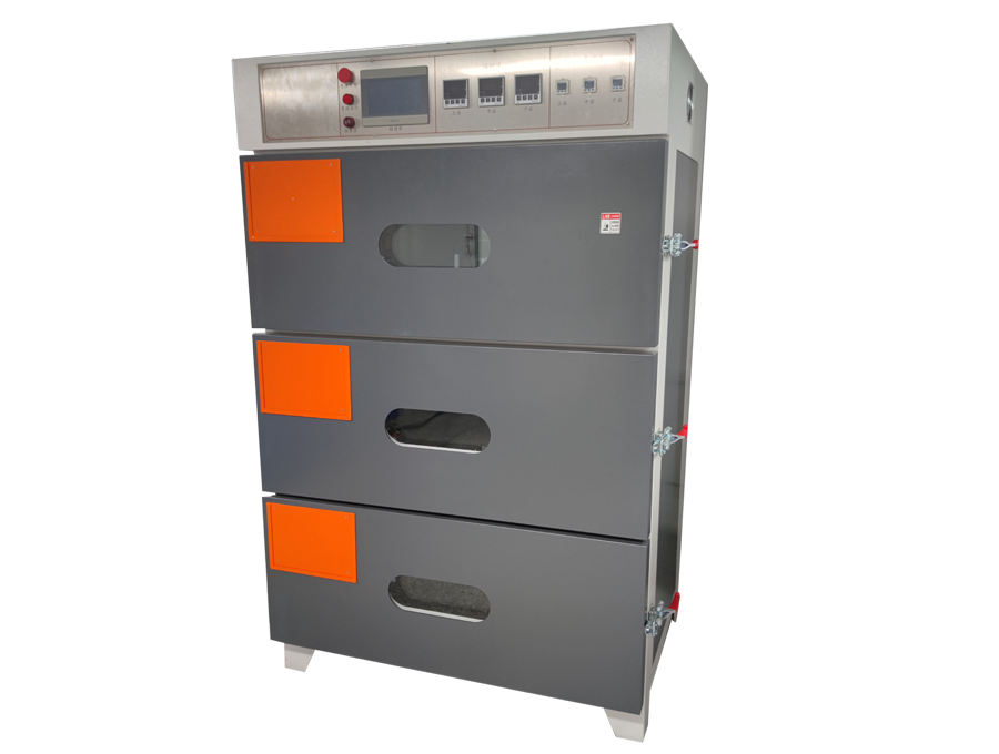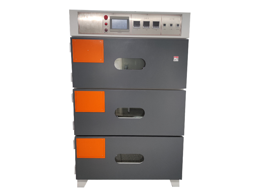 每臺(tái)機(jī)可連續(xù)循環(huán)工作;基本流程:開(kāi)門(mén)將電芯或極片放入烤箱中,再設(shè)定加熱時(shí)間、 真空時(shí)間、氮?dú)鈺r(shí)間系統(tǒng)將根據(jù)已設(shè)定的時(shí)間參數(shù)自動(dòng)完成加熱和定時(shí)換氣,完成烘烤過(guò)程。