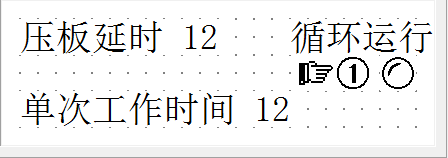 此畫面是設定電芯壓板下降氣缸延時時間.循環(huán)運行是設備出貨前調(diào)試使用.單次工作時間是顯示單次工作的時間.